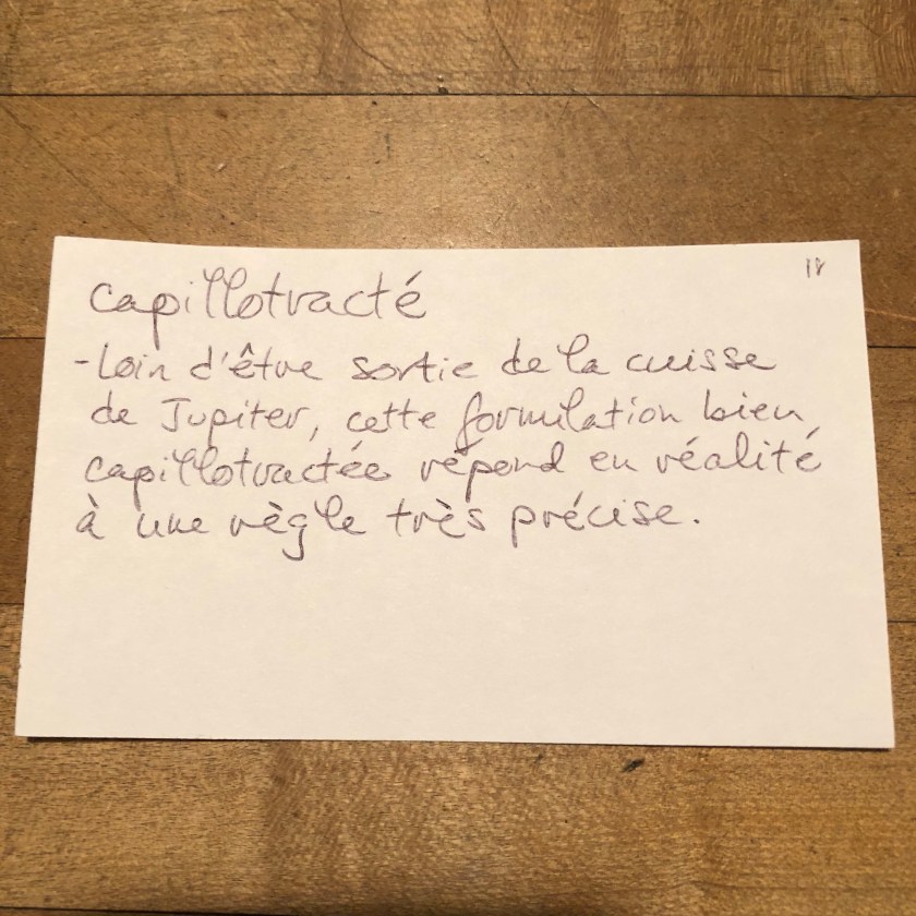 Every once in a while, though, it does not yield the desired result. Case in point: capillotracté. Not in Word Reference, not in Farlex French. So: Google… which gets me definitions that I don’t understand, because they make reference to an expression that I don’t understand: tirer quelqu’un par les cheveux. And so, dear Readers: can you help an amerloque out?